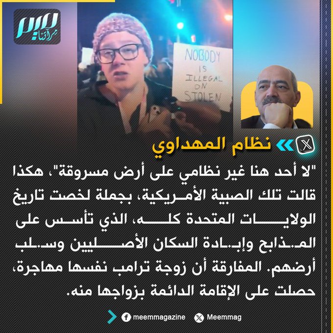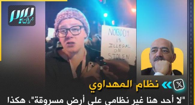 نظام المهداوي: تاريخ الولايات المتحدة لخصته متظاهرة أمريكية بجملة واحدة: "لا أحد هنا غير نظامي على أرض مسروقة".