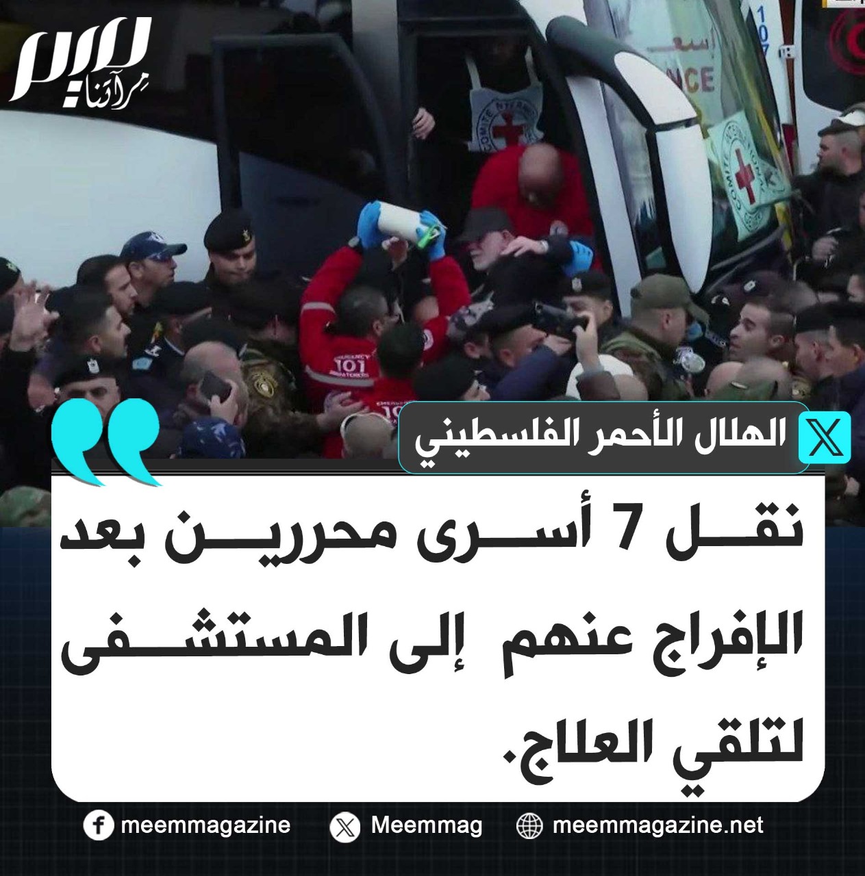 نقل 7 أسـ ـرى محررين بعد الإفراج عنهم إلى المستشفى لتلقي العلاج.