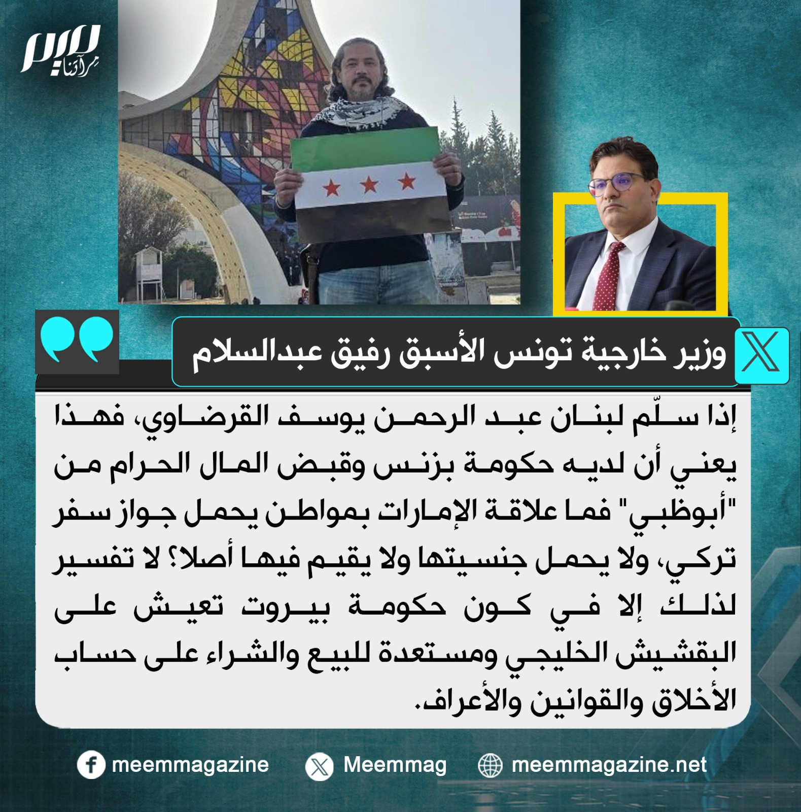 هل تتفق مع توصيف الوزير التونسي الأسبق للبنان، بخصوص تسليم عبدالرحمن يوسف القرضاوي للإمارات؟