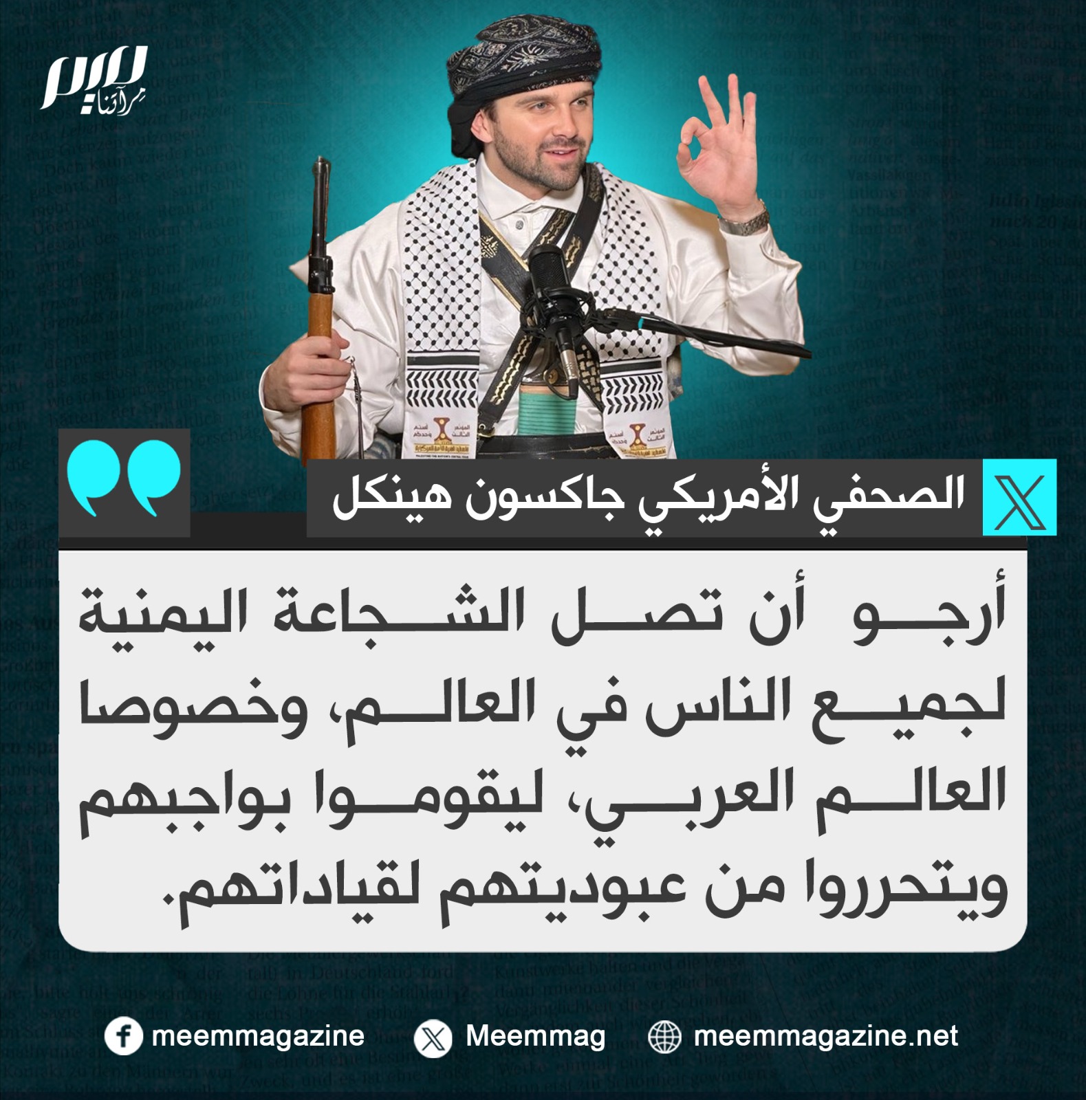 هينكل: أرجو أن تصل الشجاعة اليمنية لجميع الناس في العالم، وخصوصا العالم العربي، ليقوموا بواجبهم ويتحرروا من عبوديتهم لقياداتهم.