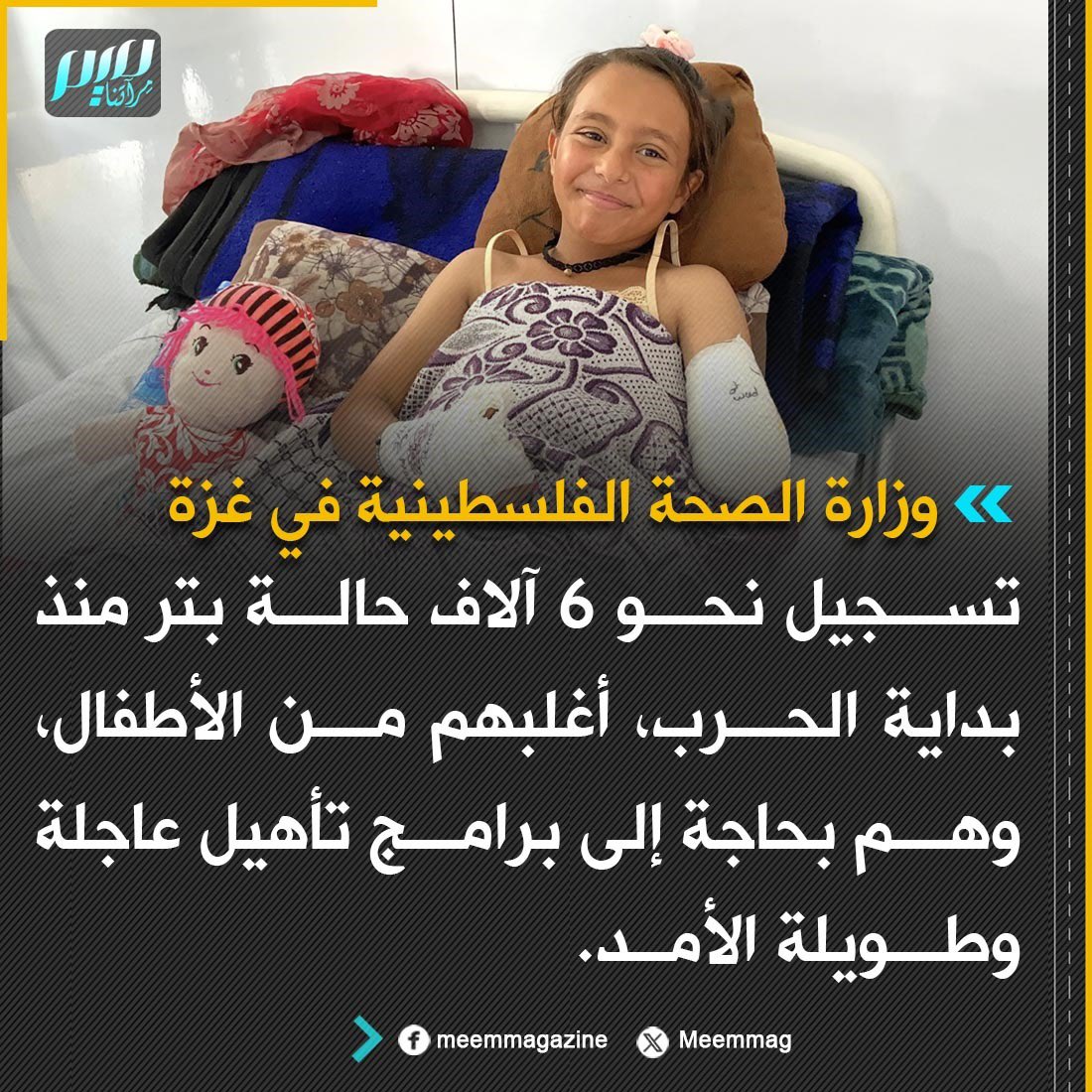 وزارة الصحة الفلسطينية في غزة: تسجيل نحو 6 آلاف حالة بتر منذ بداية الحرب، أغلبهم من الأطفال، وهم بحاجة إلى برامج تأهيل عاجلة وطويلة الأمد.