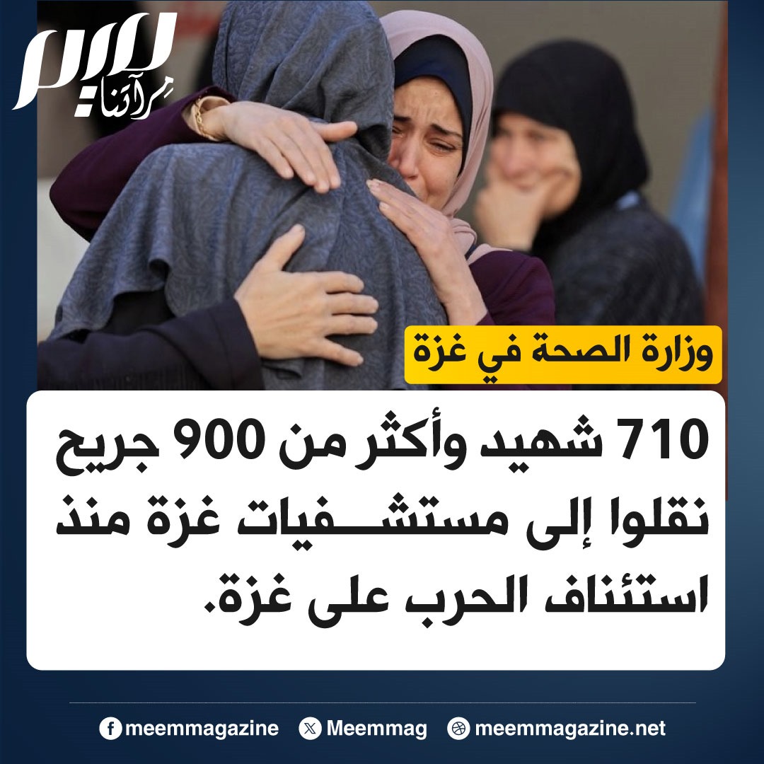 وزارة الصحة في غزة: 710 شهـ ـيد وأكثر من 900 جريح نقلوا إلى مستشفيات غزة منذ استئناف الحرب على القطاع.