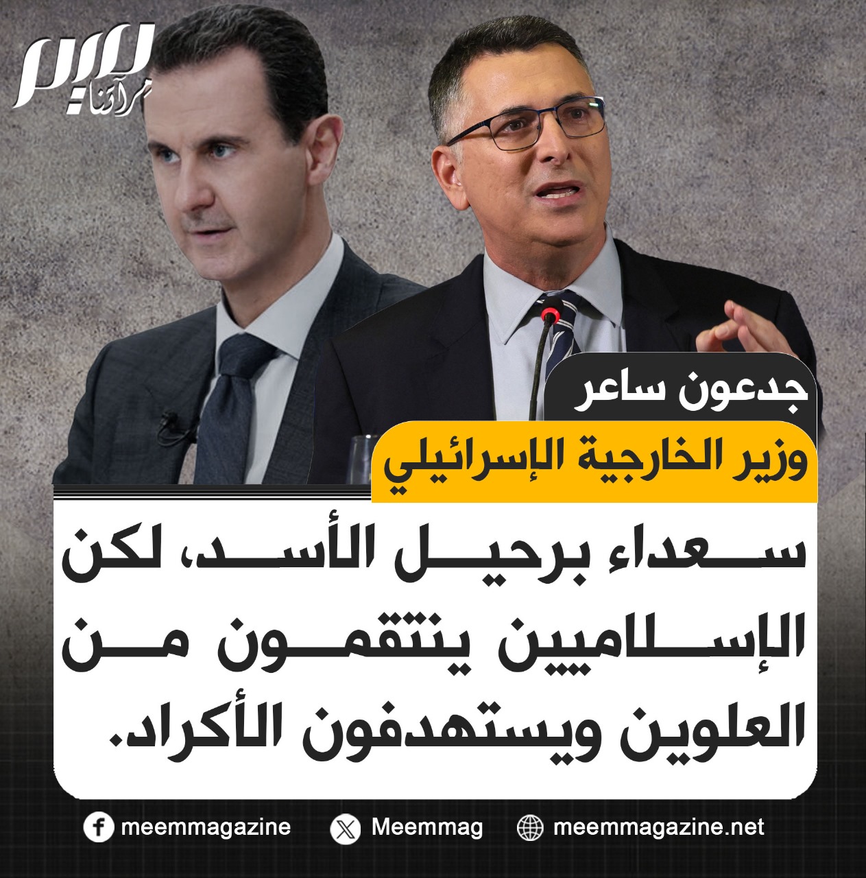 وزير الخارجية الإسرائيلي: سعداء برحيل الأسد، لكن الإسلاميين ينتقمون من العلوين ويستهدفون الأكراد.