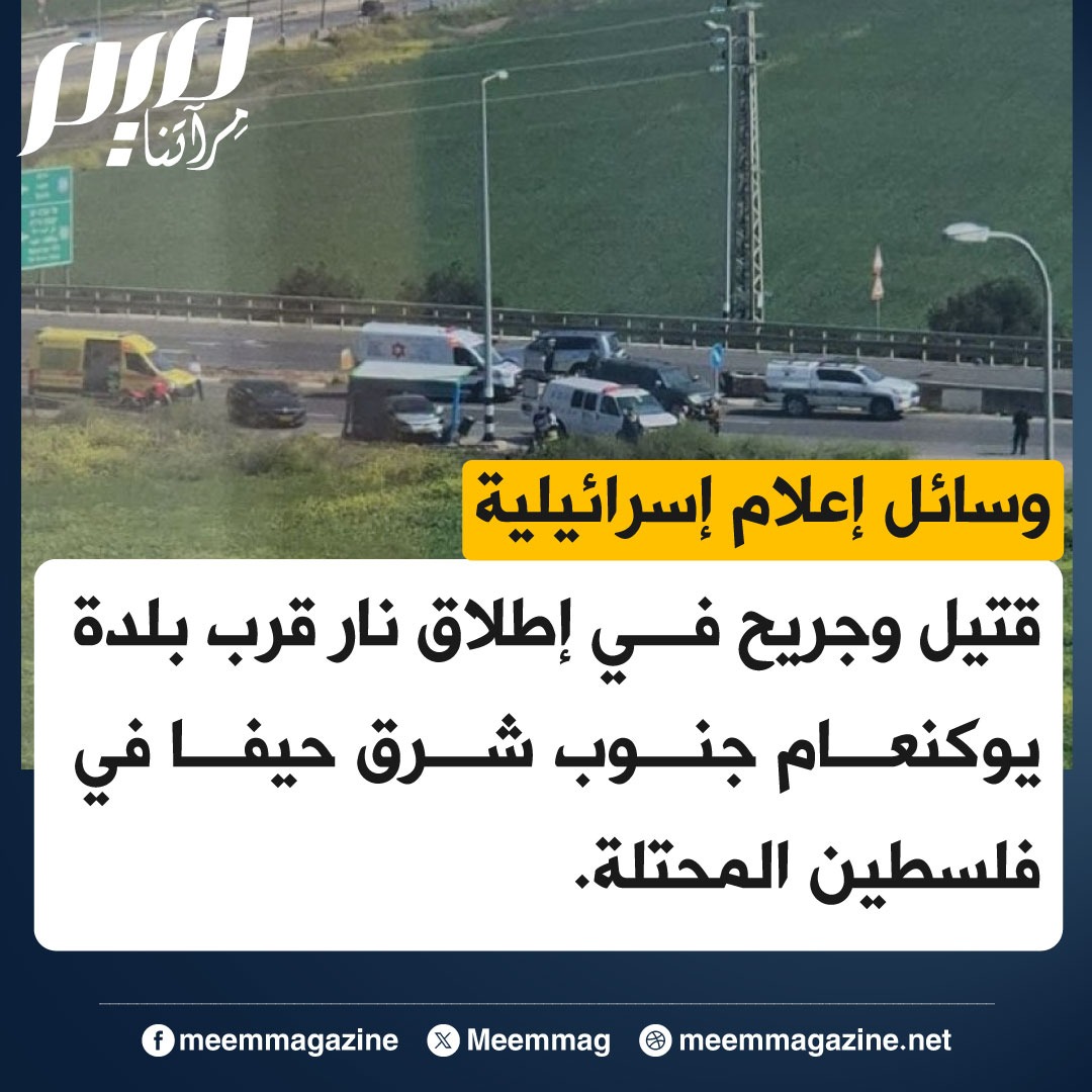 وسائل إعلام إسرائيلية: قتيل وجريح في إطلاق نار قرب بلدة يوكنعام جنوب شرق حيفا في فلسطين المحتلة.