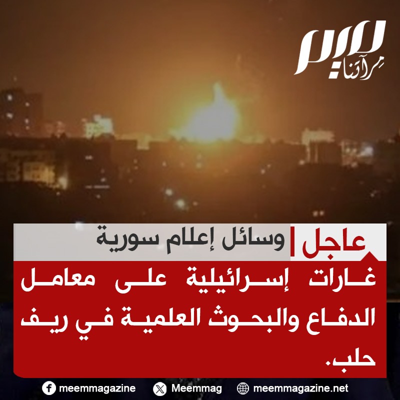 وسائل إعلام سورية: غارات إسرائيلية على معامل الدفاع والبحوث العلمية في ريف حلب.