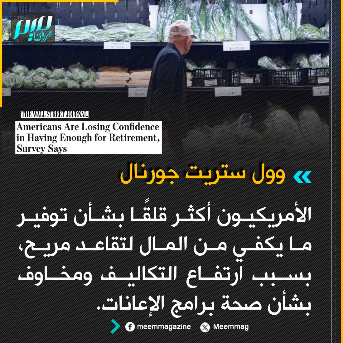 وول ستريت جورنال: الأمريكيون أكثر قلقًا بشأن توفير ما يكفي من المال لتقاعد مريح، بسبب ارتفاع التكاليف ومخاوف بشأن صحة برامج الإعانات.