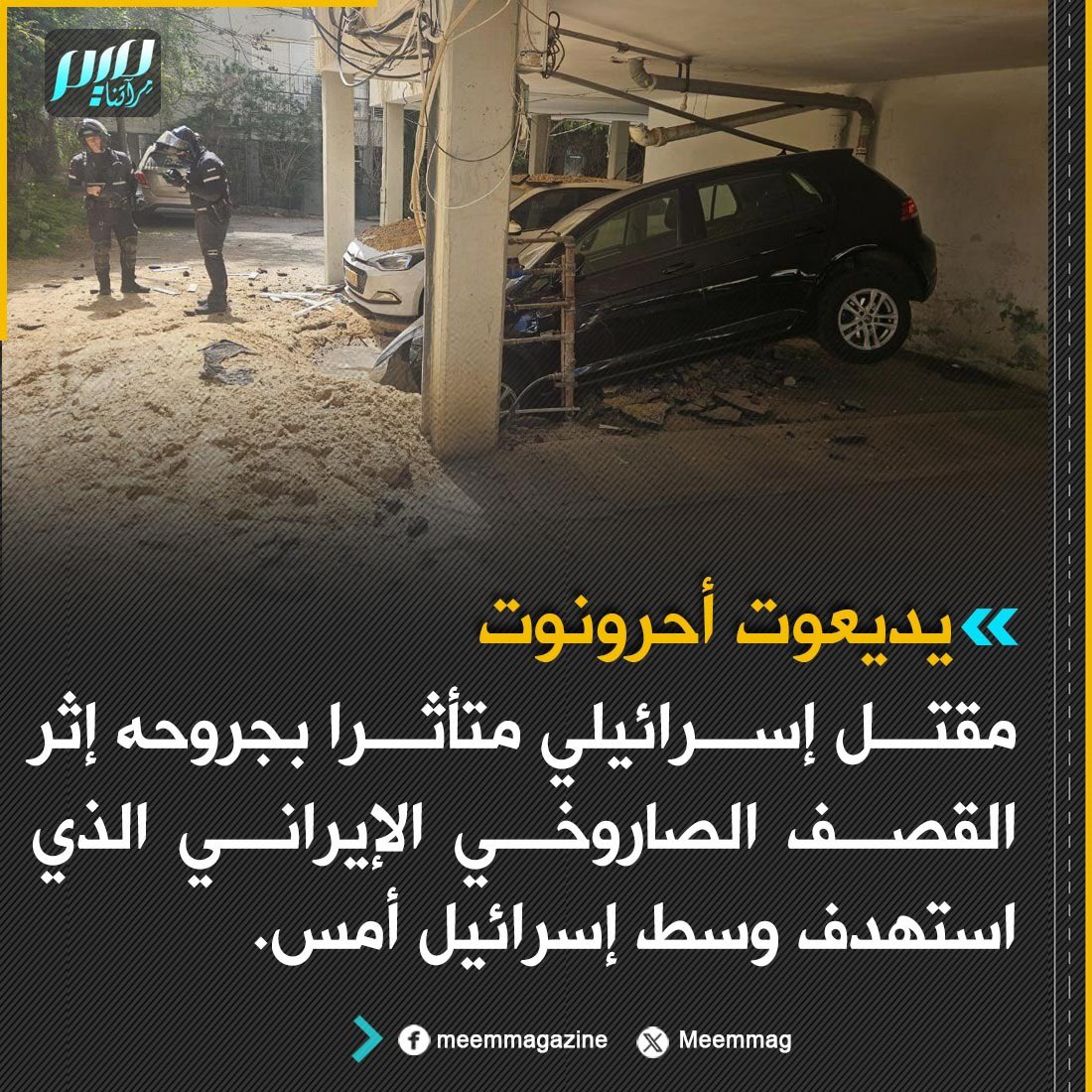 يديعوت أحرونوت: مقتل إسرائيلي متأثرا بجروحه إثر القصف الصاروخي الإيراني الذي استهدف وسط إسرائيل أمس.