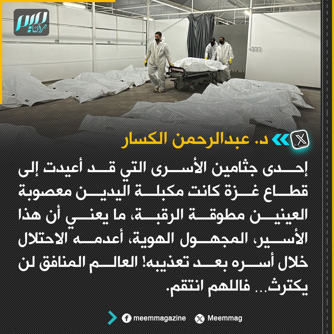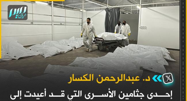 ‏د. عبدالرحمن الكسار: إحدى جثامين الأسرى التي قد أعيدت إلى قطاع غزة كانت مكبلة