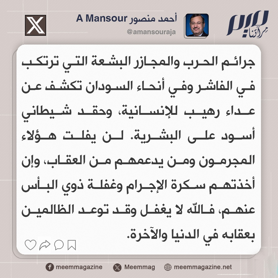 أحمد منصور: جرائم الحرب والمجازر البشعة التي ترتكب في الفاشر