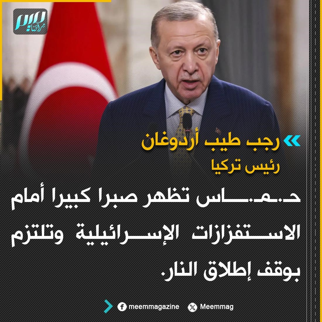 أردوغان: حـ.ـمـ.ـاس تُظهر صبرا كبيرا أمام الاستفزازات الإسرائيلية وتلتزم بوقف إطلاق النار.