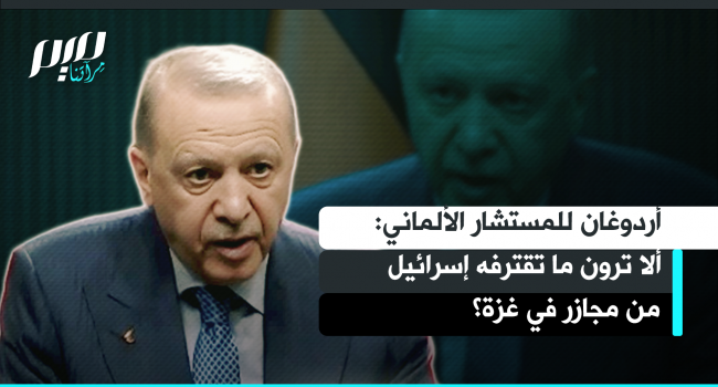 في مؤتمر صحفي مشحون، وجّه الرئيس التركي رجب طيب أردوغان انتقادًا لاذعًا للمستشار الألماني: "قُتل في غزة أكثر من 60 ألفا بين أطفال ونساء ومسنين، علما وأنّ حمـ.ـاس لا تملك قنابل ولا أسلحة نووية، بل إسرائيل من تملكها وتستخدمها.. ألا ترون ذلك؟"