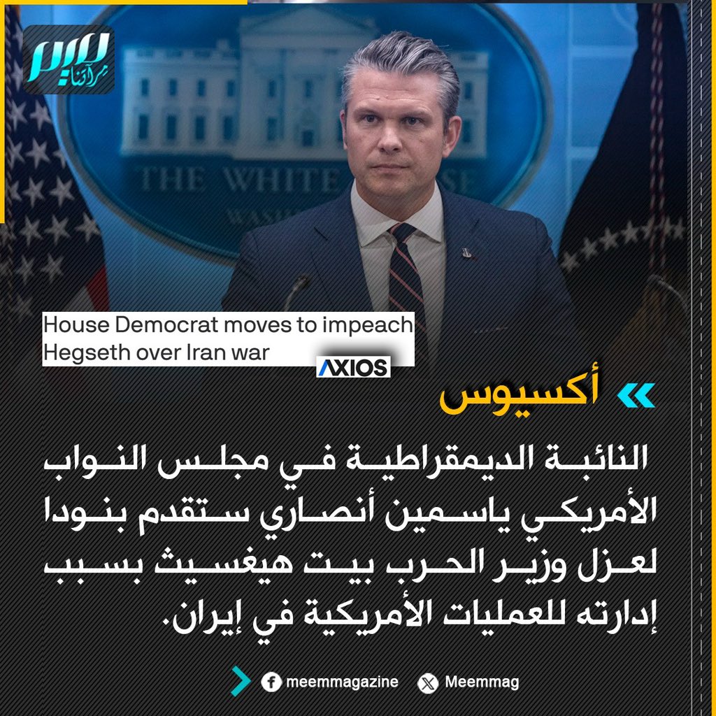 أكسيوس: النائبة الديمقراطية في مجلس النواب الأمريكي ياسمين أنصاري ستقدم بنودا لعزل وزير الحرب بيت هيغسيث