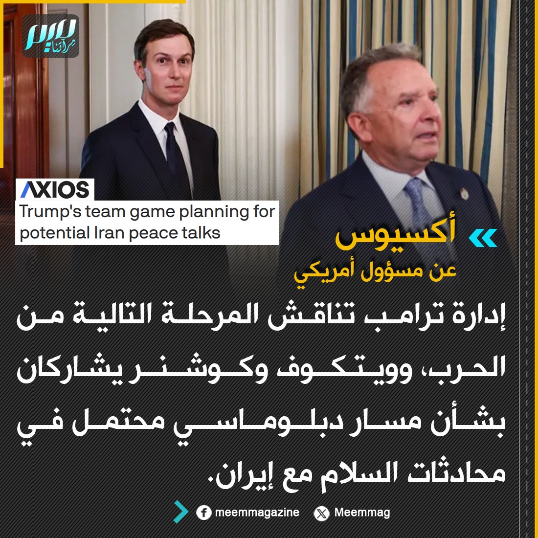 أكسيوس عن مسؤول أمريكي: إدارة ترامب تناقش المرحلة التالية من الحرب، وويتكوف وكوشنر يشاركان بشأن مسار دبلوماسي محتمل في محادثات السلام مع إيران.