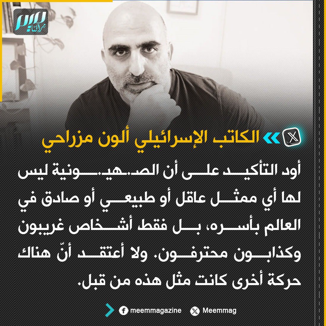 ألون مزراحي: أود التأكيد على أن الصـ.ـهيـ.ـونية ليس لها أي ممثل عاقل أو طبيعي