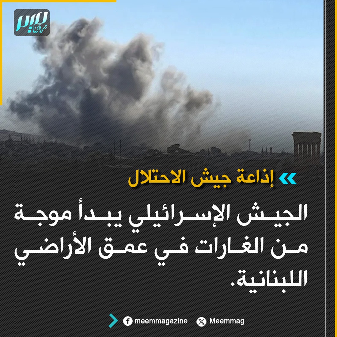 إذاعة جيش الاحتلال: الجيش الإسرائيلي يبدأ موجة من الغارات في عمق الأراضي اللبنانية.