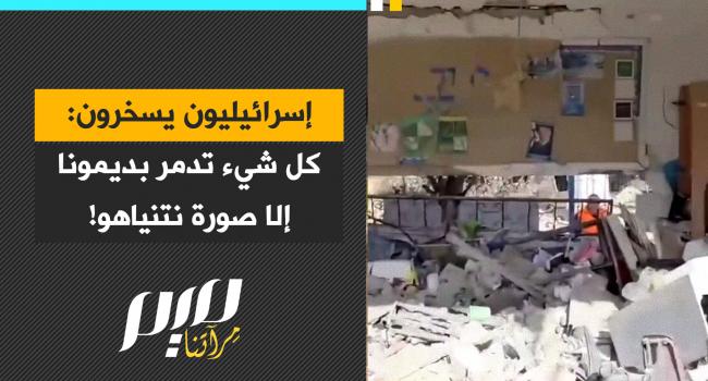 شاهد.. مقطع فيديو صور صباح اليوم، يظهر جانبا من آثار الدمار الذي أحدثته الصواريخ الإيرانية في مدينة ديمونا الإسرائيلية مساء أمس. وإسرائيليون يسخرون: "معجزة! كل شيء تدمر إلا صورة نتنياهو".
