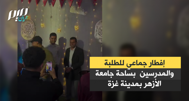 إقامة إفطار جماعي للطلبة والطواقم التدريسية في ساحة جامعة الأزهر بمدينة غزة.