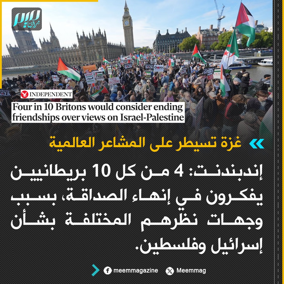 إندبندنت: 4 من كل 10 بريطانيين يفكرون في إنهاء الصداقة، بسبب وجهات نظرهم المختلفة بشأن إسرائيل وفلسطين.