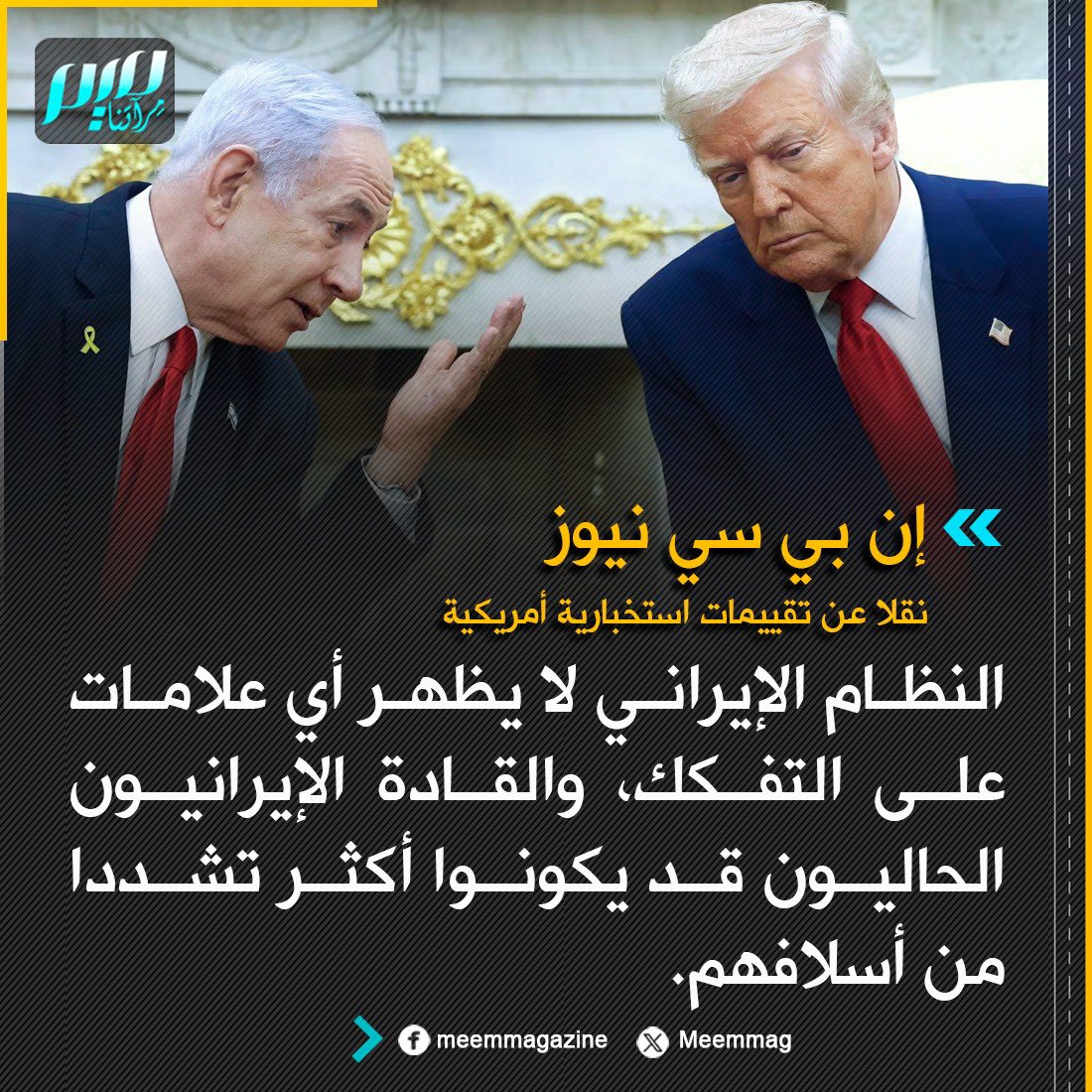 إن بي سي نيوز نقلا عن تقييمات استخبارية أمريكية: النظام الإيراني لا يظهر أي علامات على التفكك، والقادة الإيرانيون الحاليون قد يكونوا أكثر تشددا من أسلافهم.