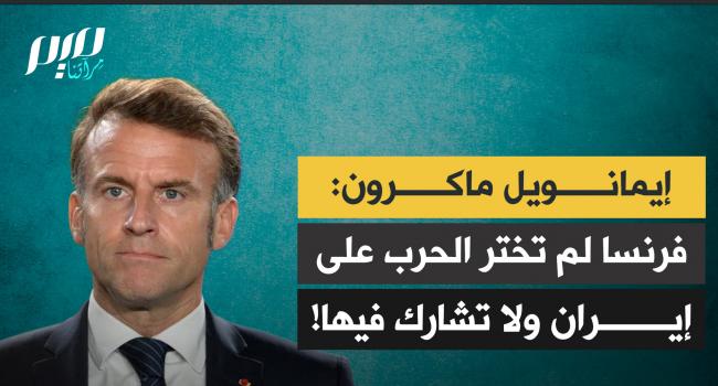 الرئيس الفرنسي إيمانويل ماكرون: "فرنسا لم تختر هذه الحرب ولا تشارك فيها، أهدافنا هي حماية رعايانا، ومواقعنا الدبلوماسية والعسكرية، ومصالحنا في المنطقة".