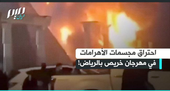 ألسنة اللهب تلتهم مجسمات تُحاكي أهرامات مصر في مهرجان خريص بالرياض. شاهد.