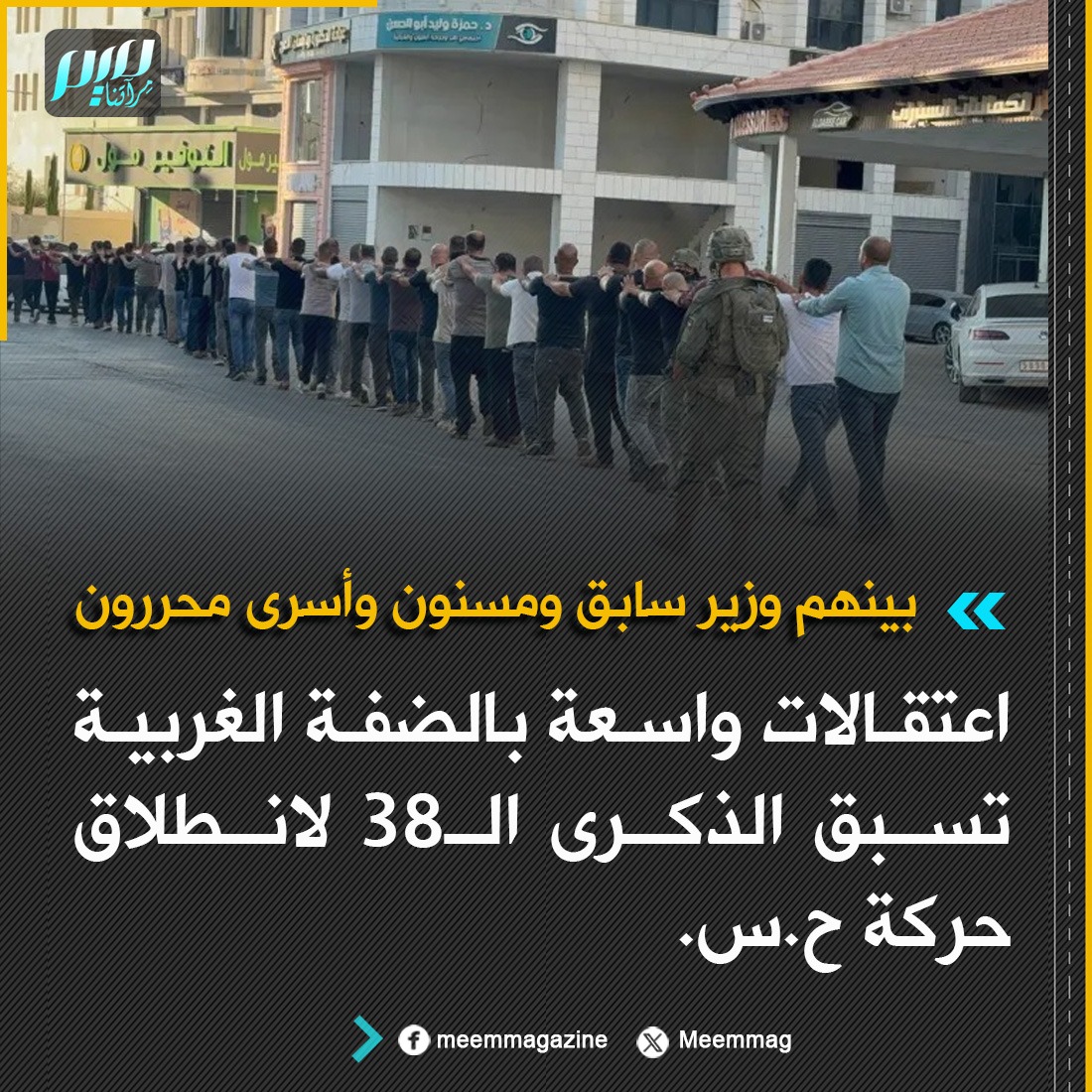 اعتقالات واسعة بالضفة الغربية تسبق الذكرى الـ38 لانطلاق حركة ح.س، بينهم وزير سابق ومسنون وأسرى محررون.