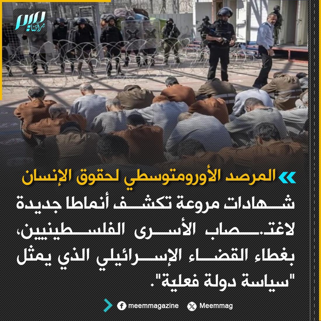 الأورومتوسطي: شهادات مروعة تكشف أنماطا جديدة لاغتـ.ـصاب الأسرى الفلسطينيين، بغطاء القضاء الإسرائيلي الذي يمثل "سياسة دولة فعليّة".