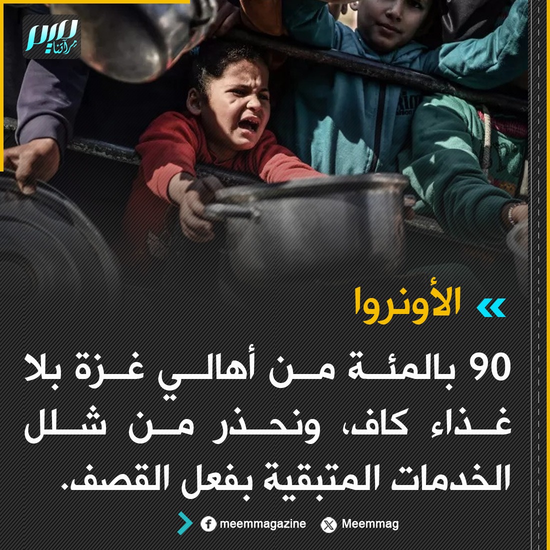 الأونروا: 90 بالمئة من أهالي غزة بلا غذاء كاف، ونحذر من شلل الخدمات المتبقية بفعل القصف.