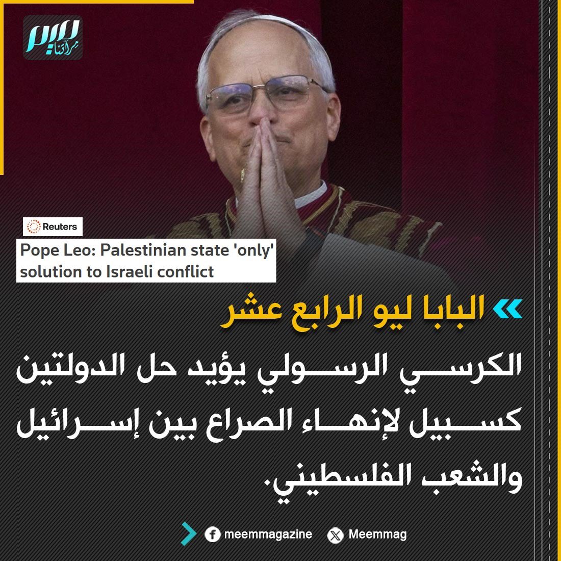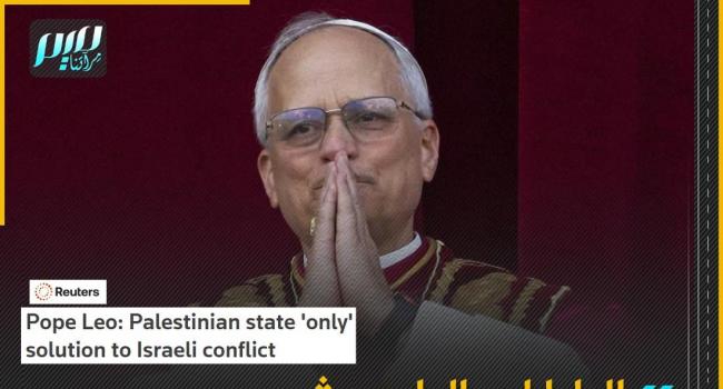 البابا ليو الرابع عشر: الكرسي الرسولي يؤيد حل الدولتين كسبيل لإنهاء الصراع بين إسرائيل والشعب الفلسطيني.