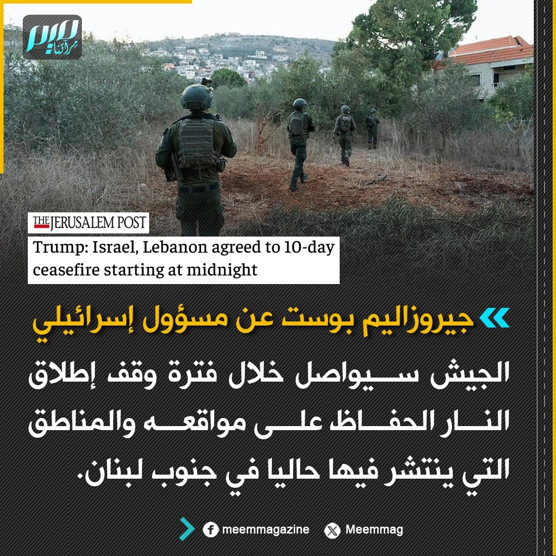 الجيش سيواصل خلال فترة وقف إطلاق النار الحفاظ على مواقعه