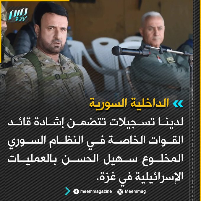 الداخلية السورية: لدينا تسجيلات تتضمن إشادة قائد القوات الخاصة في النظام السوري المخلوع سهيل الحسن بالعمليات الإسرائيلية في غزة.