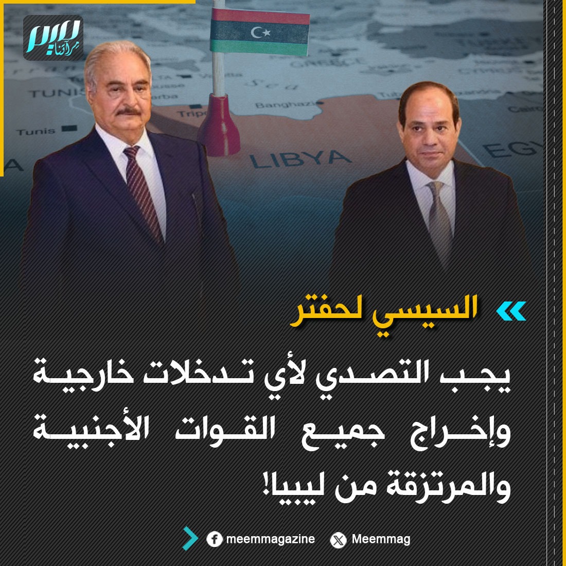 السيسي لحفتر: يجب التصدي لأي تدخلات خارجية وإخراج جميع القوات الأجنبية والمرتزقة من ليبيا!