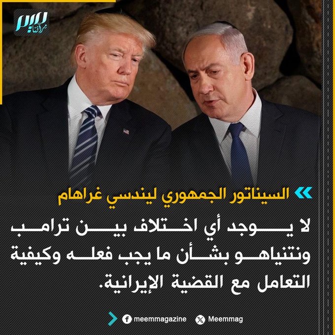 السيناتور الجمهوري ليندسي غراهام: لا يوجد أي اختلاف بين ترامب ونتنياهو بشأن ما يجب فعله وكيفية التعامل مع القضية الإيرانية.