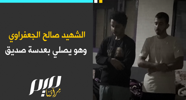 فيديو للناشط الإعلامي الفلسطيني الشهيد صالح الجعفراوي أثناء صلاته، التقطته عدسة كاميرا صديق، وتتناقله منصات التواصل الاجتماعي.