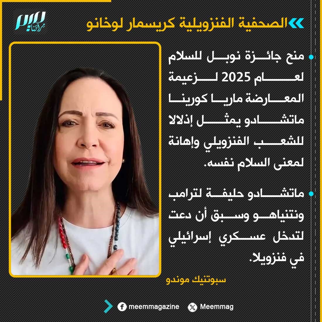 الصحفية الفنزويلية كريسمار لوخانو: منح جائزة نوبل للسلام لعام 2025