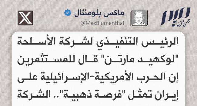 الصحفي الأمريكي ماكس بلومنتال: "لوكهيد مارتن" تعتبر الحرب الأمريكية-الإسرائيلية على إيران "فرصة ذهبية" لاختبار صواريخها.