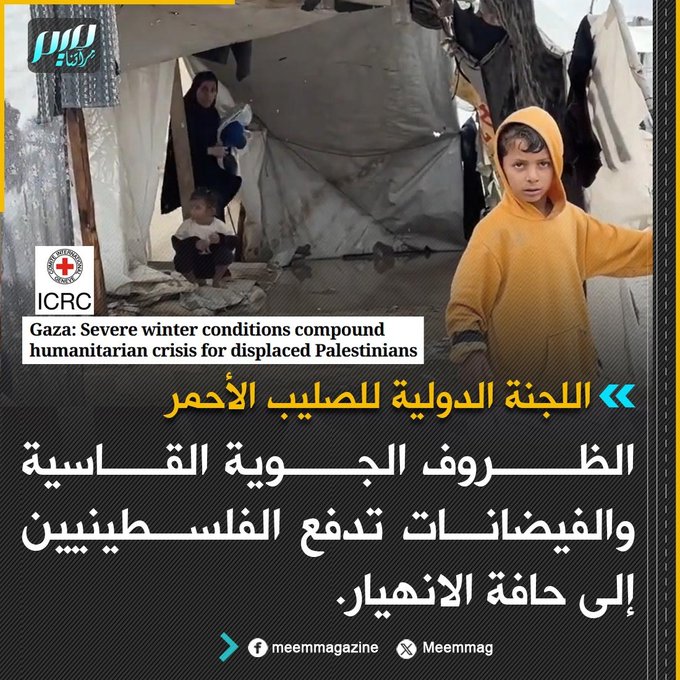 الصليب الأحمر: الظروف الجوية القاسية والفيضانات تدفع الفلسطينيين إلى حافة الانهيار.