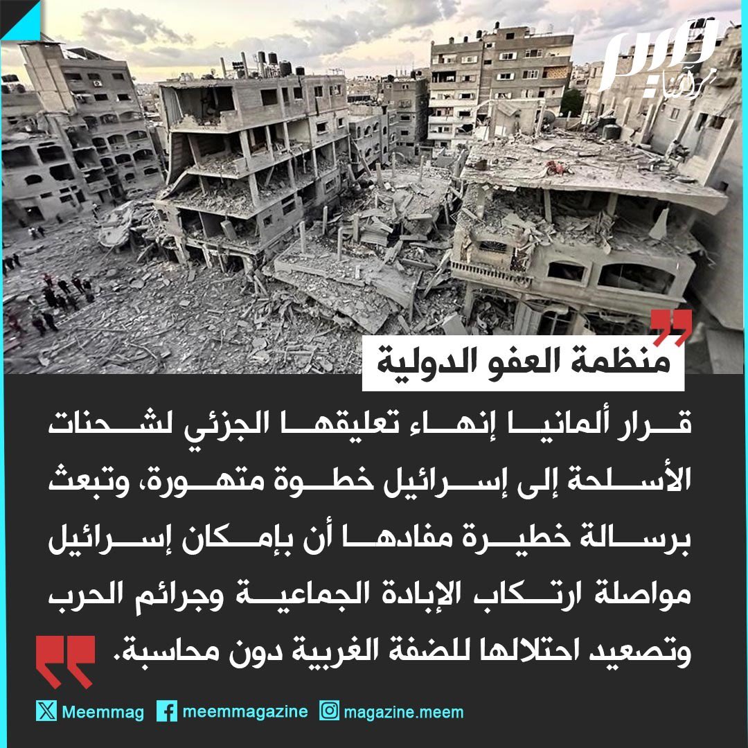 العفو الدولية: قرار ألمانيا إنهاء تعليقها الجزئي لشحنات الأسلحة إلى إسرائيل خطوة متهورة