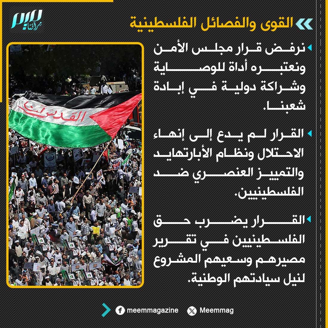 القوى والفصائل الفلسطينية: نرفض قرار مجلس الأمن ونعتبره أداة للوصاية وشراكة دولية في إبادة شعبنا.