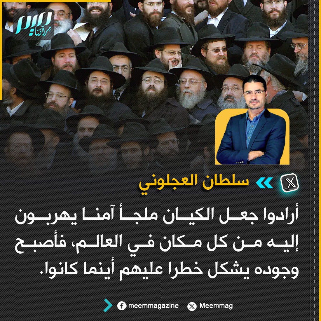 الكاتب الأردني سلطان العجلوني: أرادوا جعل الكيان ملجأ آمنا يهربون إليه من كل مكان في العالم، فأصبح وجوده يشكل خطرا عليهم أينما كانوا.