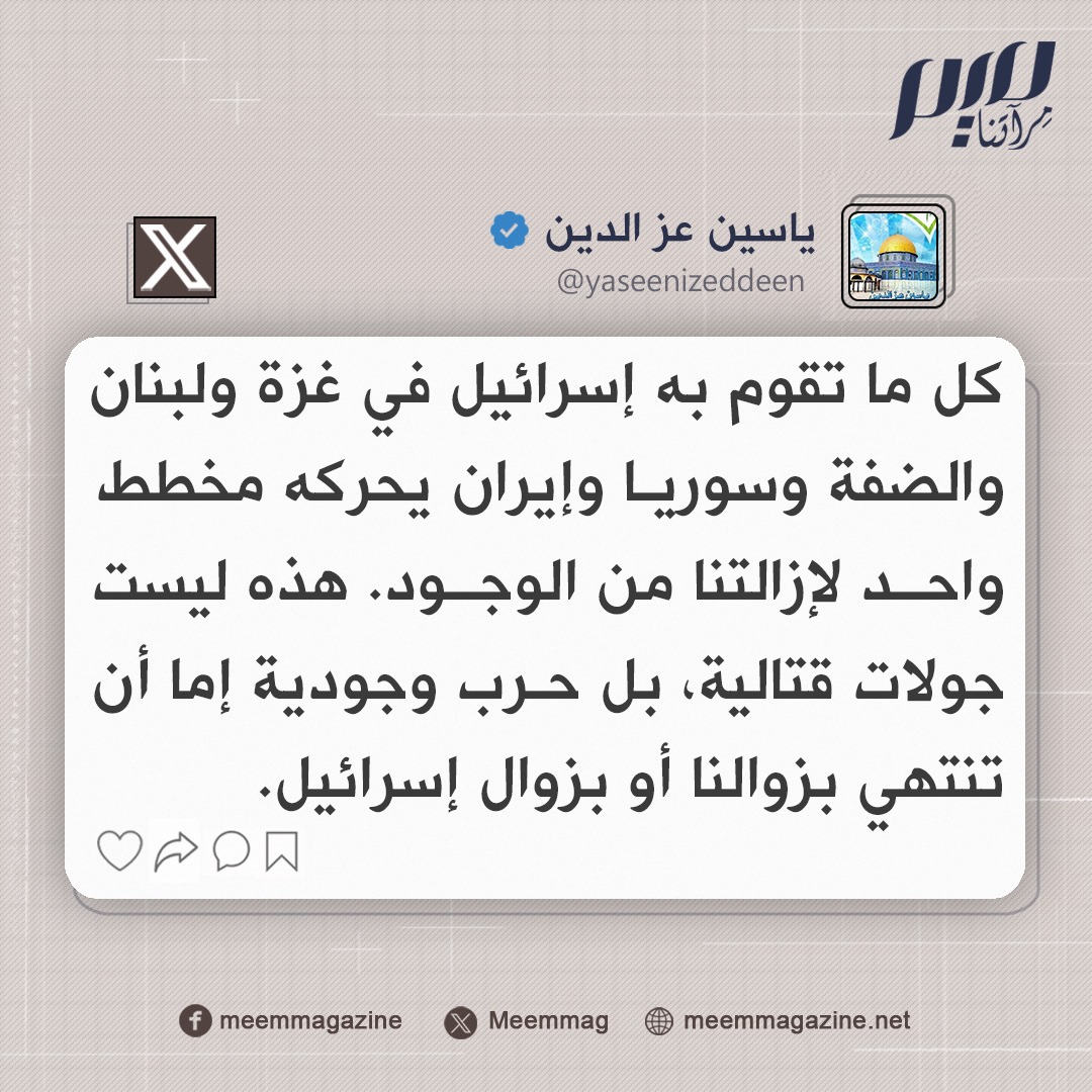 الكاتب الفلسطيني ياسين عز الدين: كل ما تقوم به إسرائيل يحركه مخطط واحد لإزالتنا من الوجود.