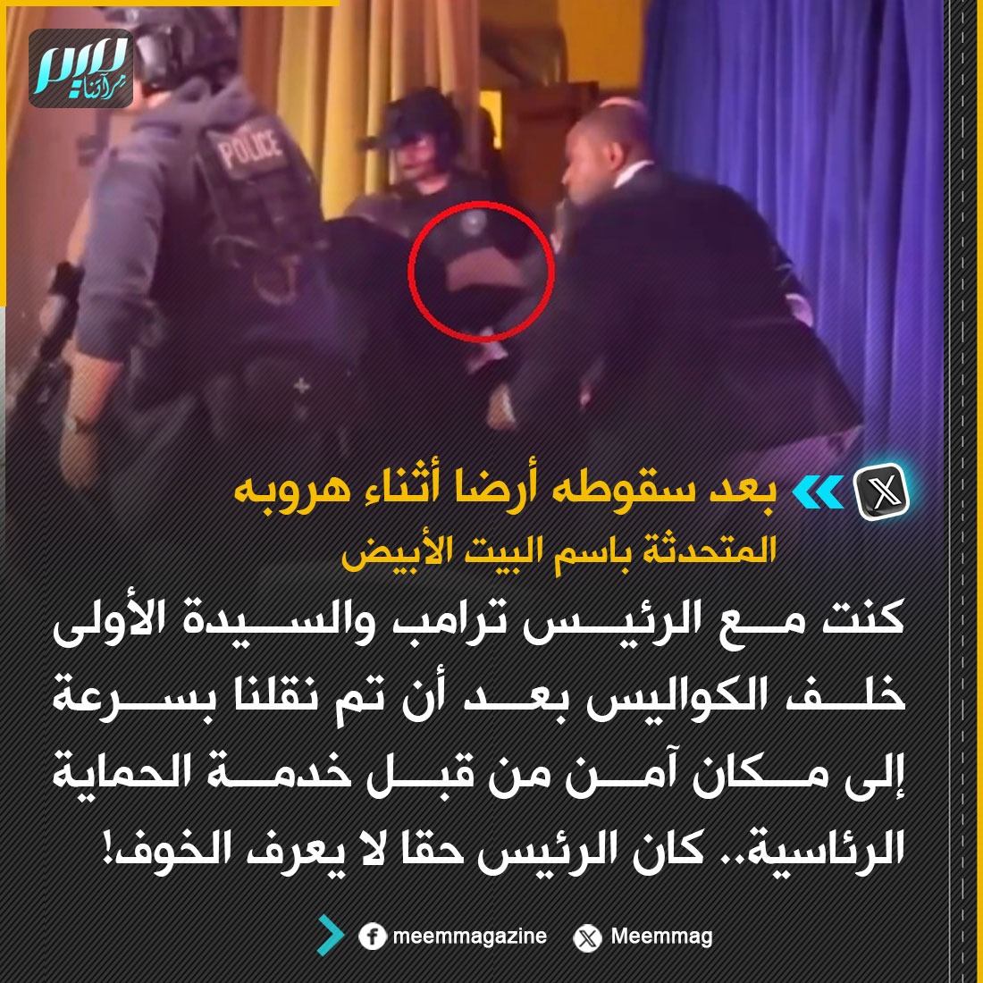 بعد سقوطه أرضا أثناء هروبه إثر سماعه أصوات طلقات نارية.. المتحدثة باسم البيت الأبيض كارولين ليفيت: كان الرئيس ترامب حقا لا يعرف الخوف!