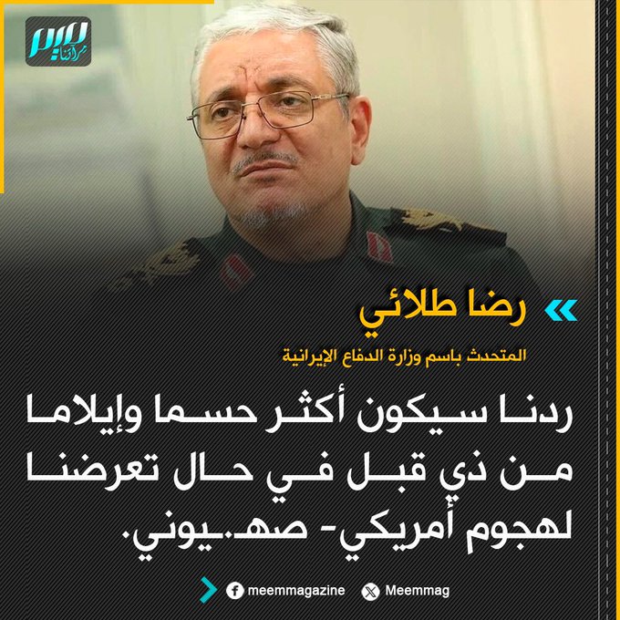 المتحدث باسم وزارة الدفاع الإيرانية: ردنا سيكون أكثر حسما وإيلاما من ذي قبل في حال تعرضنا لهجوم أمريكي- صهـ.ـيوني.