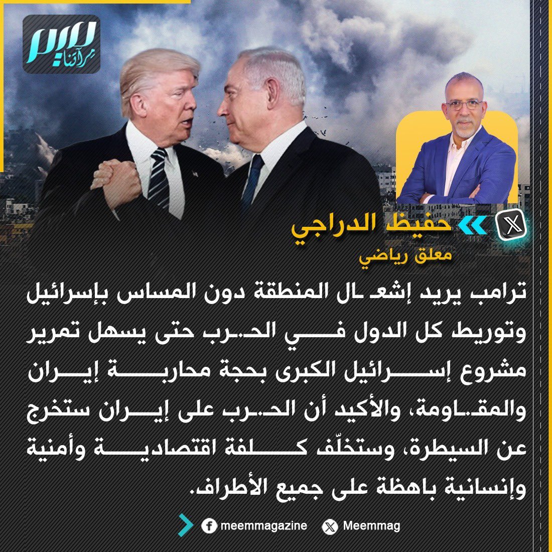 المعلق الرياضي حفيظ الدراجي: ترامب يريد إشعـ.ـال المنطقة دون المساس بإسرائيل