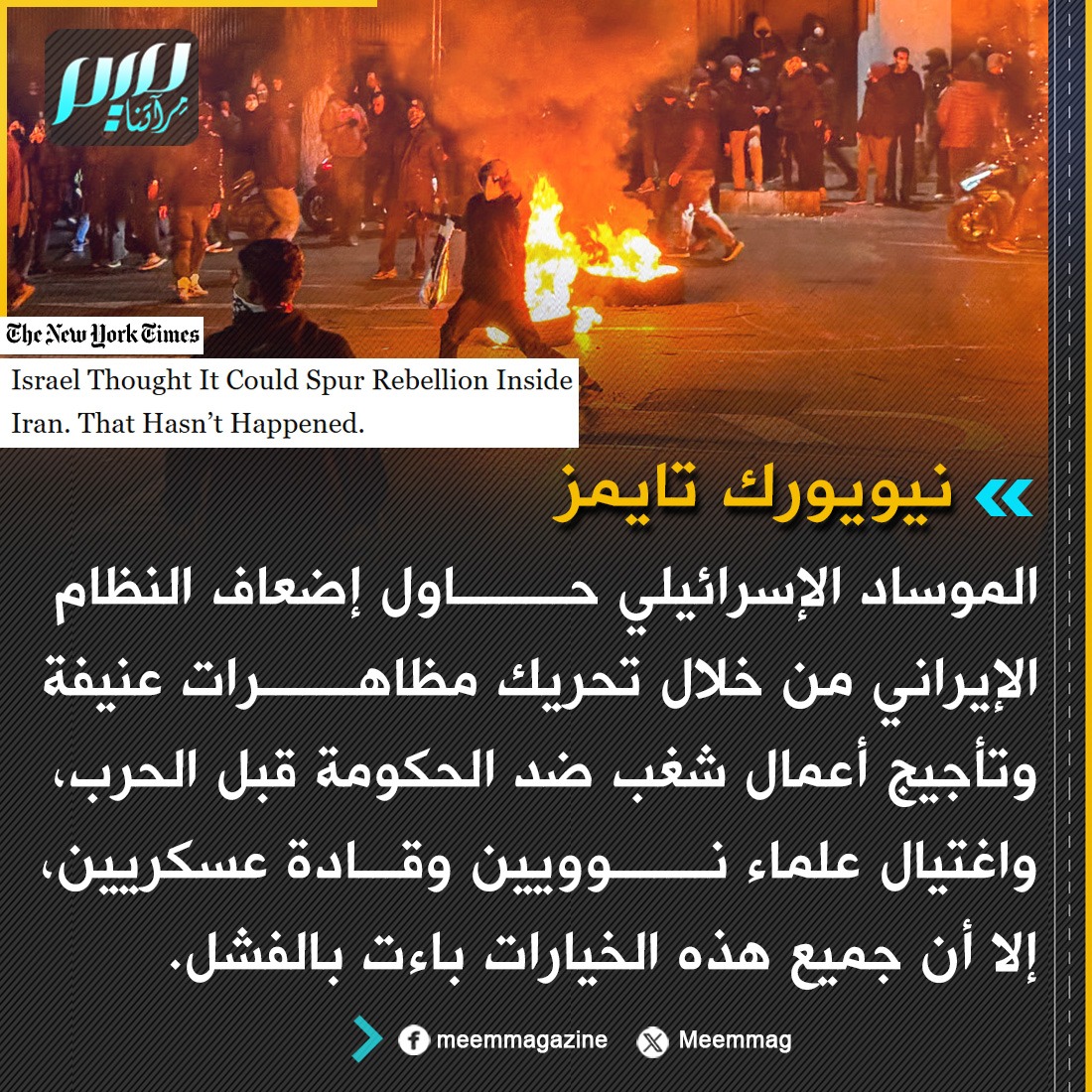 الموساد الإسرائيلي يقر بتأجيج أعمال شغب ضد النظام الإيراني قبل الحرب.