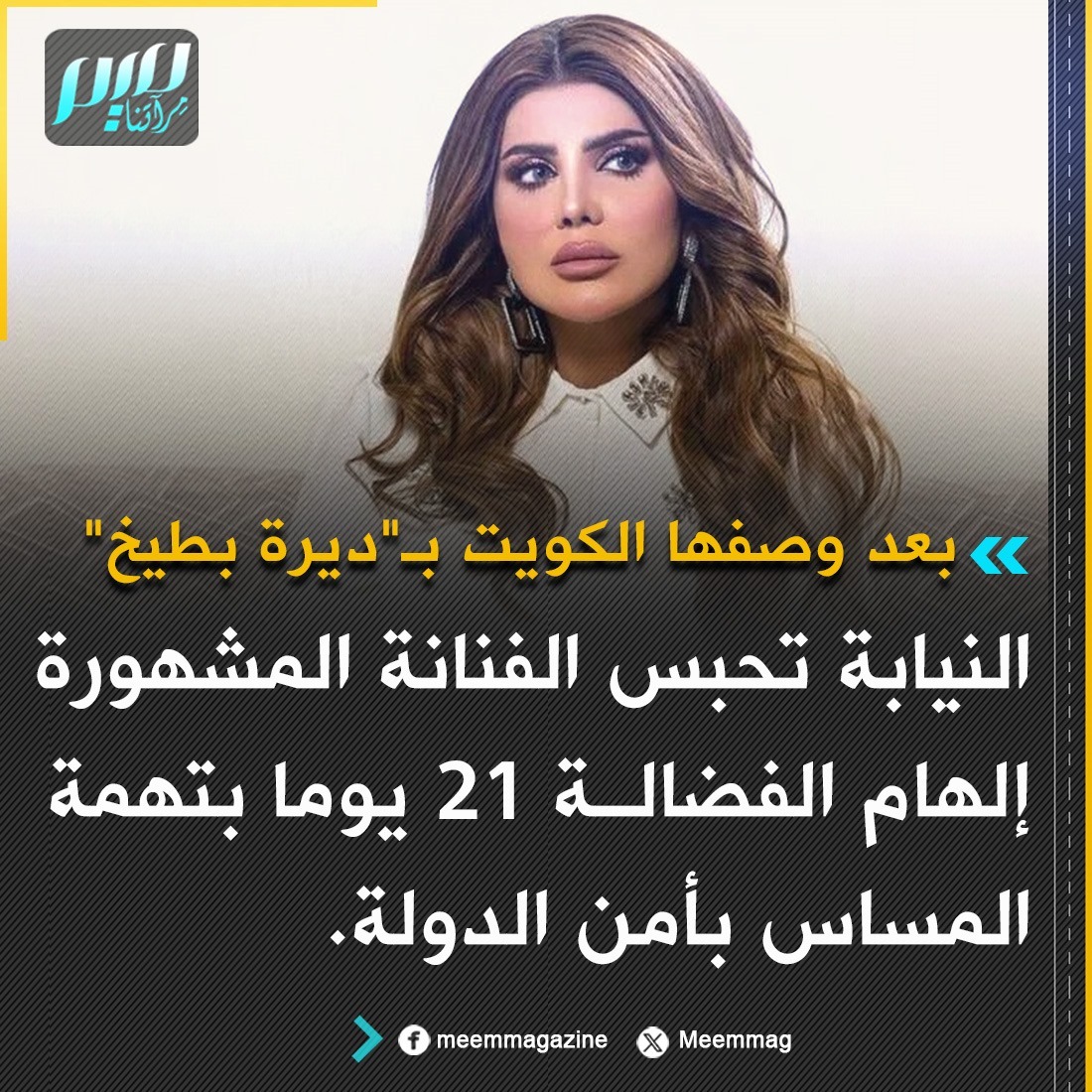 النيابة العامة تقرر حبس الفنانة الكويتية إلهام الفضالة، بعد تداول تسجيل صوتي مسرب لها تنتقد فيه أوضاع البلاد.