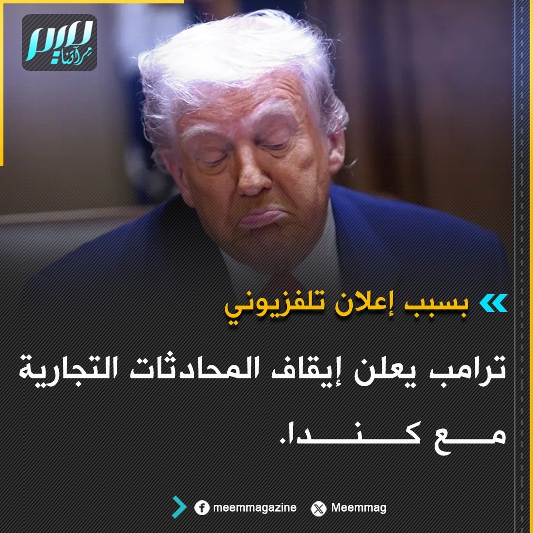 بسبب إعلان تلفزيوني: ترامب يعلن إيقاف المحادثات التجارية مع كندا.
