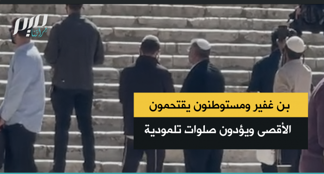 الوزير الإسرائيلي المتطرف "إيتمار بن غفير" يقتحم المسجد الأقصى المبارك مجددا، برفقة مجموعة من المستوطنين ويؤدون صلوات تلمودية.