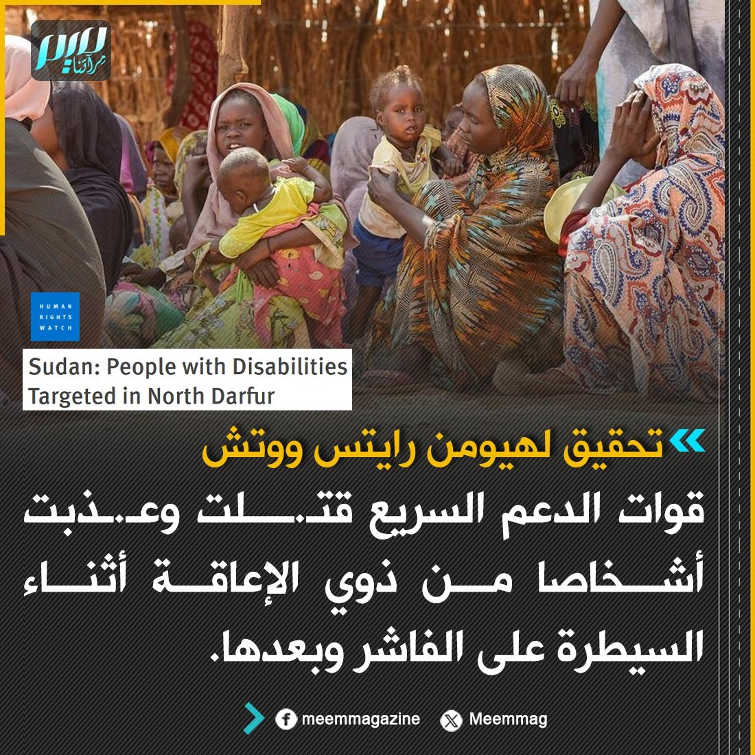 تحقيق لهيومن رايتس ووتش: قوات الدعم السريع قتـ.ـلت وعـ.ـذبت أشخاصا من ذوي الإعاقة أثناء السيطرة على الفاشر وبعدها.