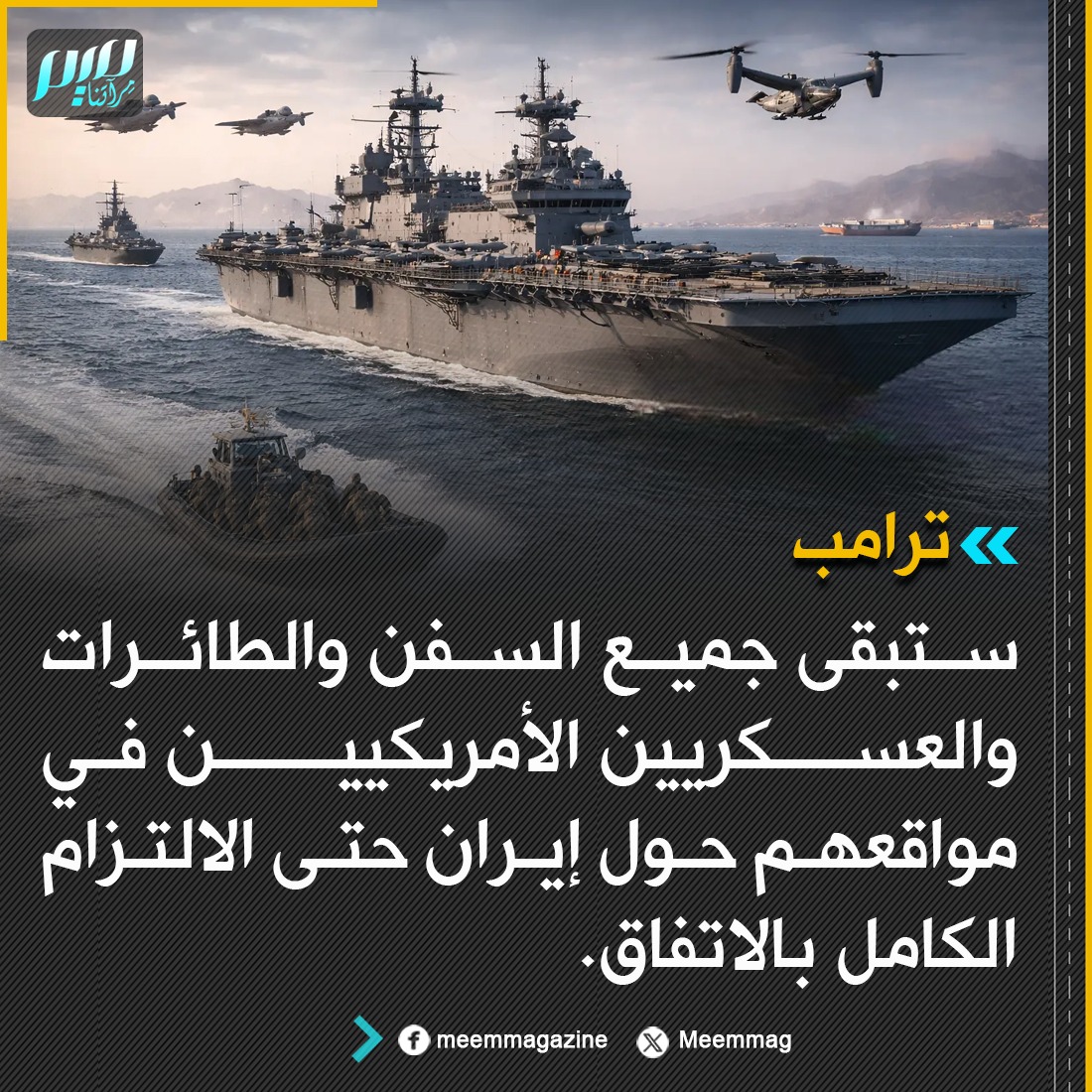ترامب: ستبقى جميع السفن والطائرات والعسكريين الأمريكيين في مواقعهم حول إيران